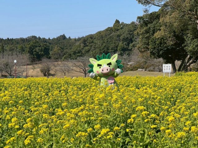 季節に合わせた様々な花々が楽しめるスポットですが、今の時期は菜の花畑を楽しむことができるよ🌼